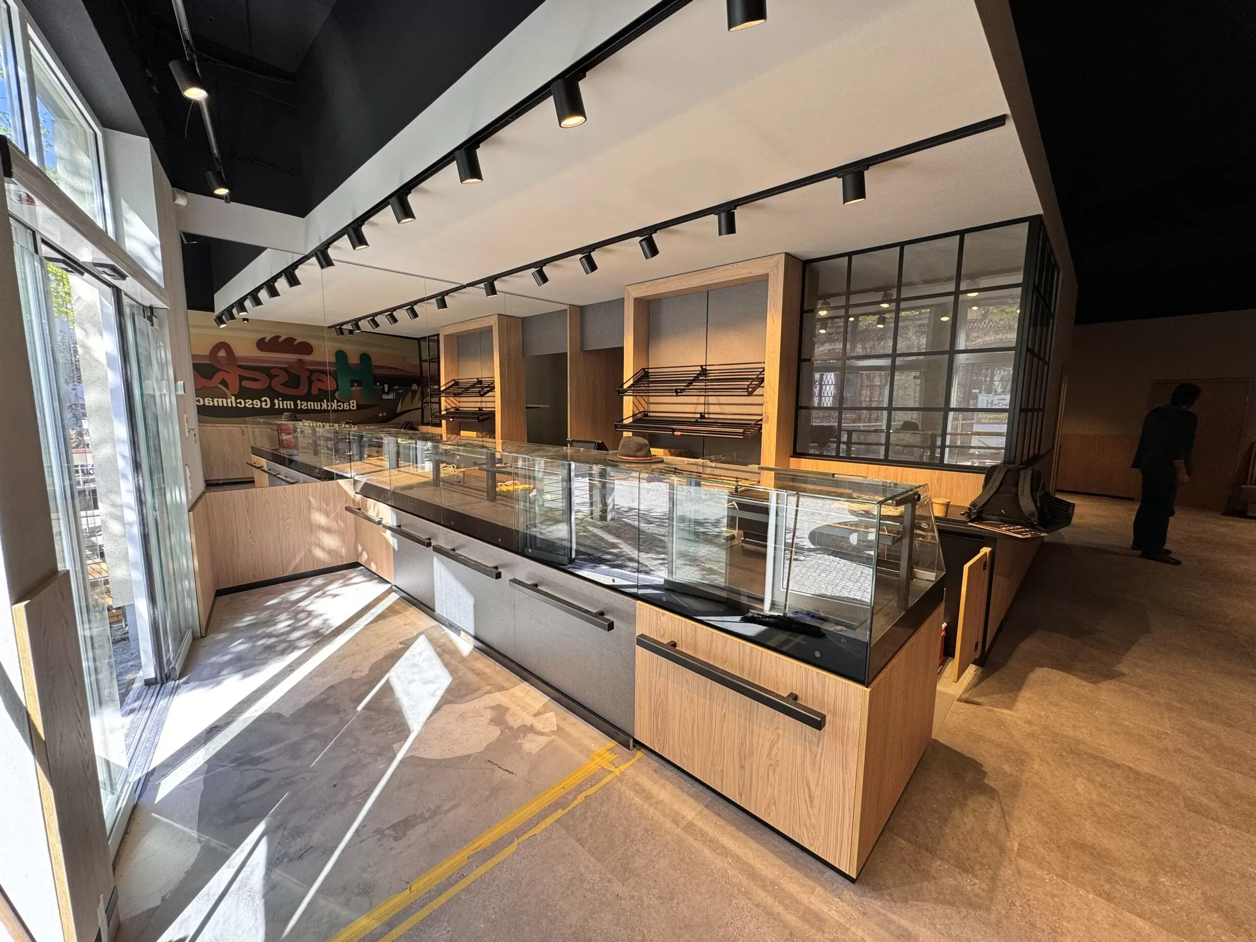 Bei der Gestaltung dieses Bäckereiprojekts lag der Fokus darauf, ein ruhiges und harmonisches Gesamtbild zu schaffen, das sowohl einladend als auch ästhetisch ansprechend ist. Jedes Detail wurde sorgfältig durchdacht und ausgewählt, um die gewünschte Atmosphäre zu erzielen und gleichzeitig die Funktionalität zu gewährleisten.