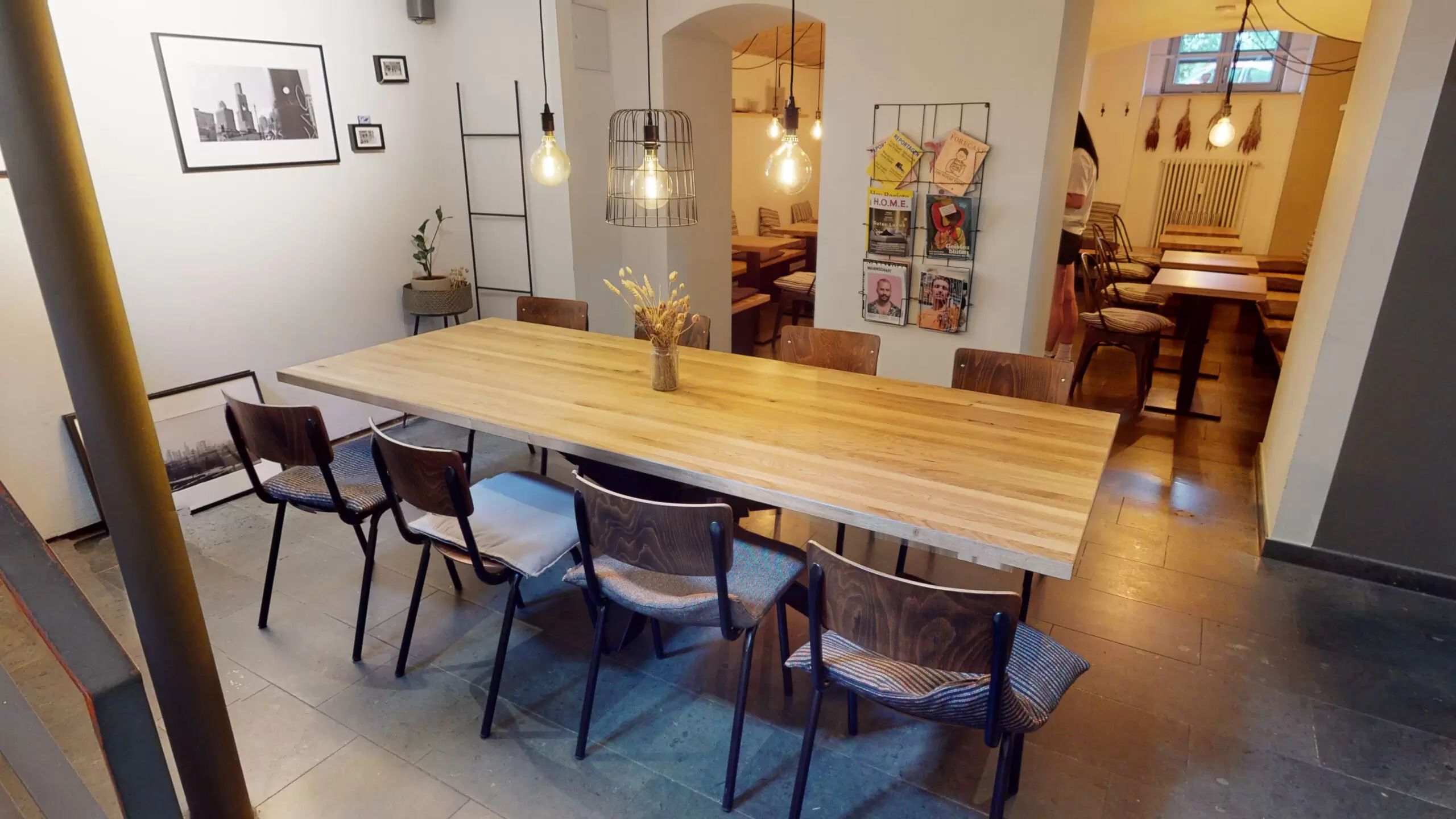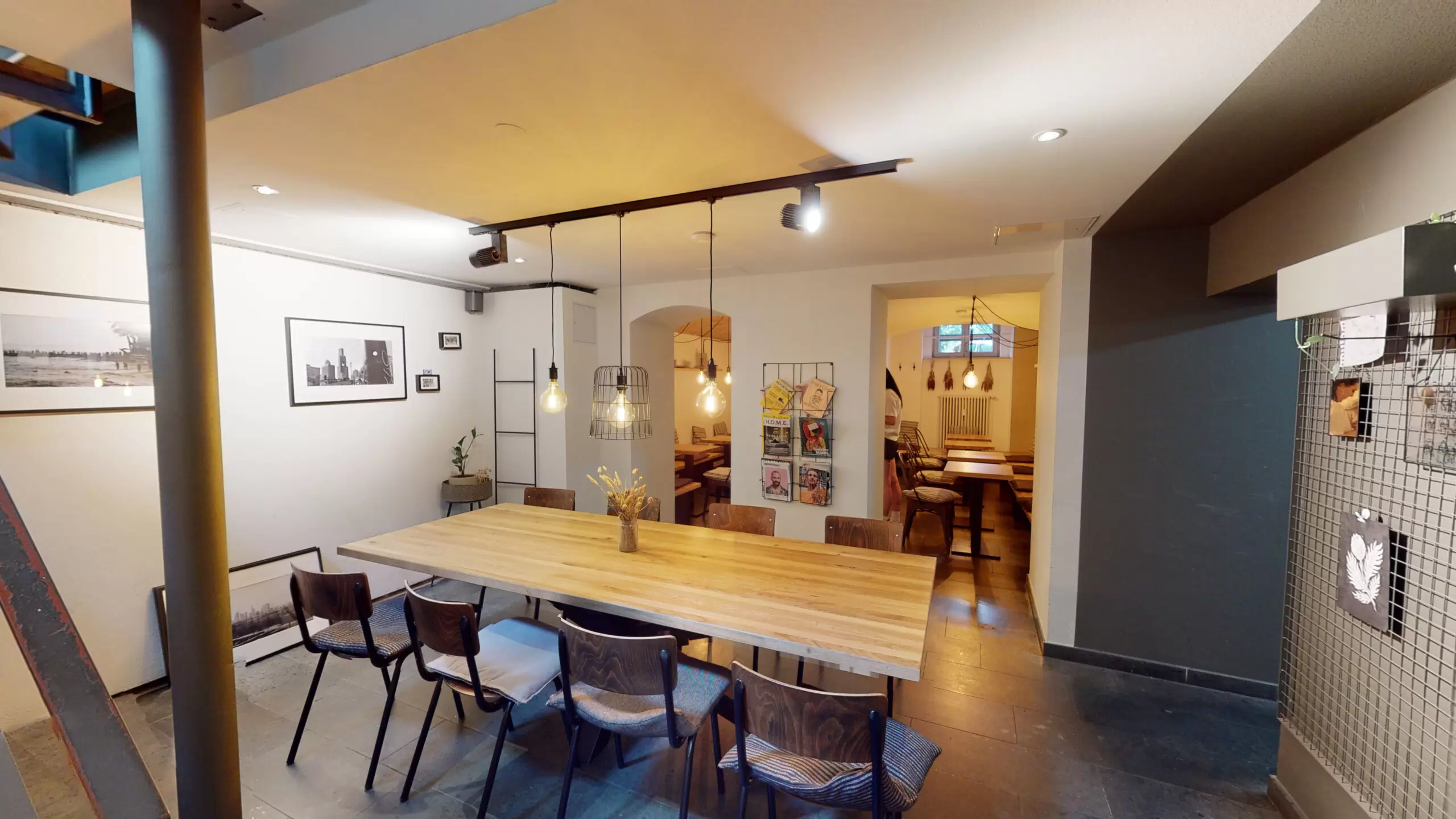 Ergänzt wird das Konzept durch industrielle Lichtelementen und viel Liebe zu kleinen Details, welche das Ambiente vollends abrunden. Auch in den Kellerräumen wurde ein gemütlicher wie auch geselliger Sitzbereich installiert, der zu Treffen mit Freunden, Kolleginnen und Kollegen oder einfach zum Entspannen einlädt.