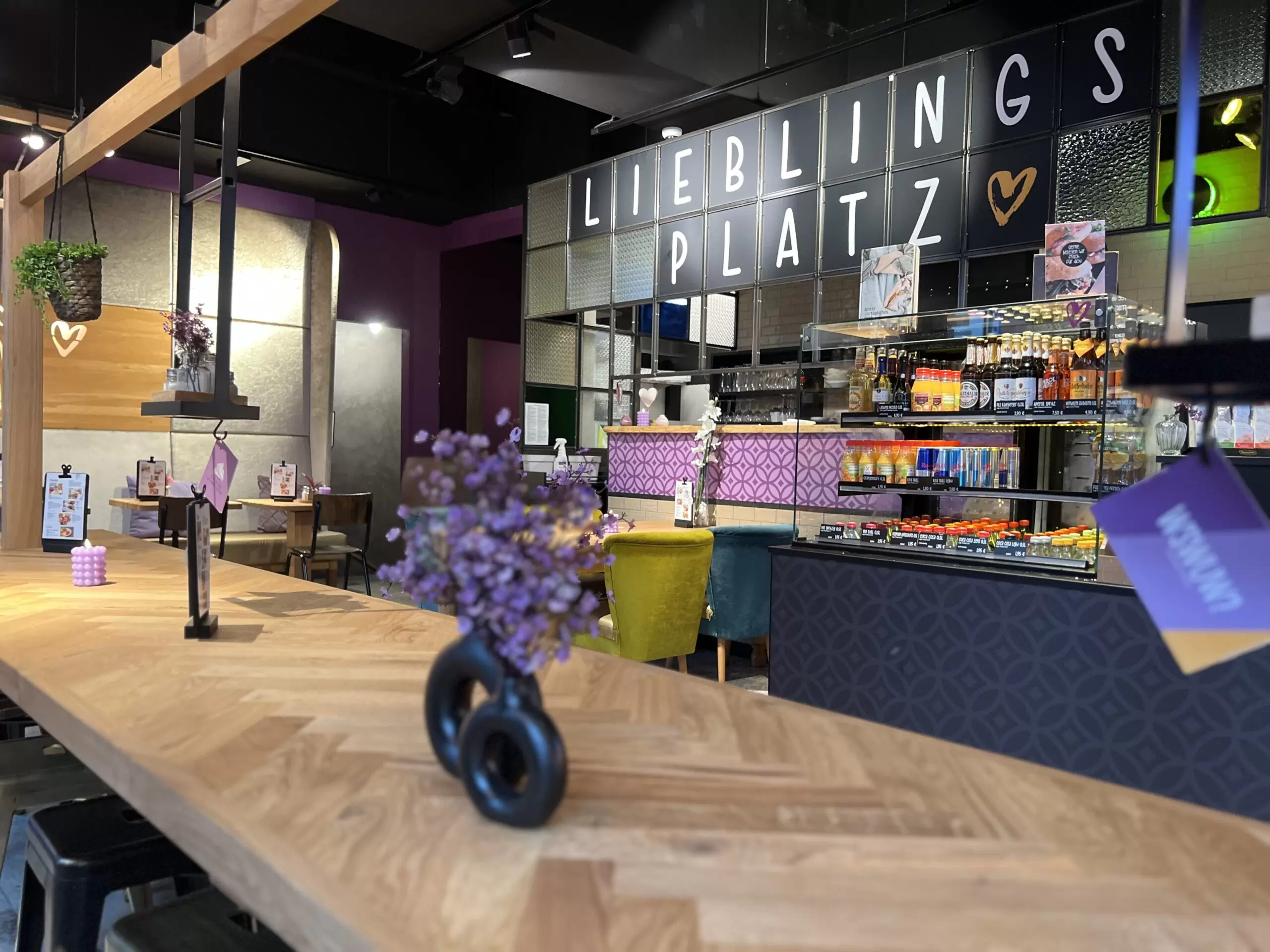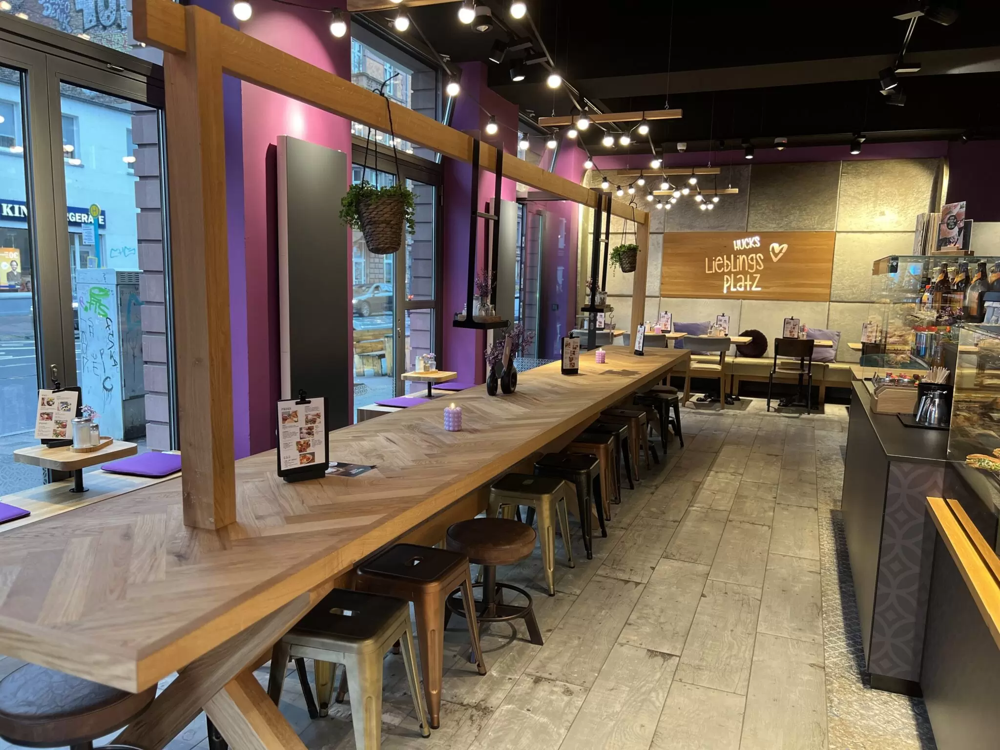 - Lieferumfang: Verkaufs- und Sitzbereich inkl. Thekenbau, Bestuhlung und individuelle Tische, Digital Signage