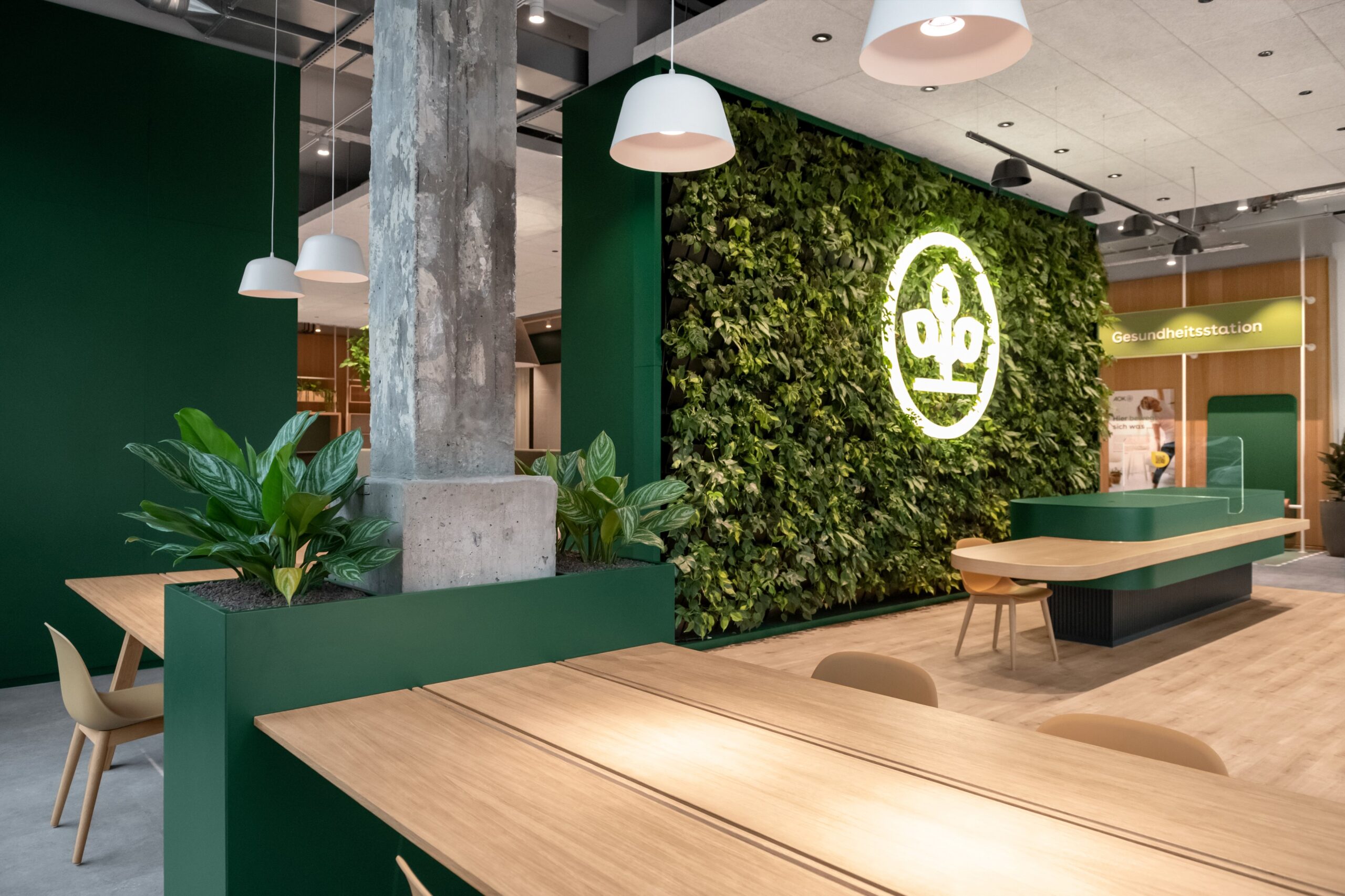 Dabei lag unser Fokus auf der Präsentation der Produkte in Theken aus unserer Fertigung. Wann immer es räumlich möglich war, integrierten wir einen kleinen Gastro-Bereich, der zum Frühstücken, für den Mittagssnack und auch für Kaffee und Kuchen bestens geeignet war.